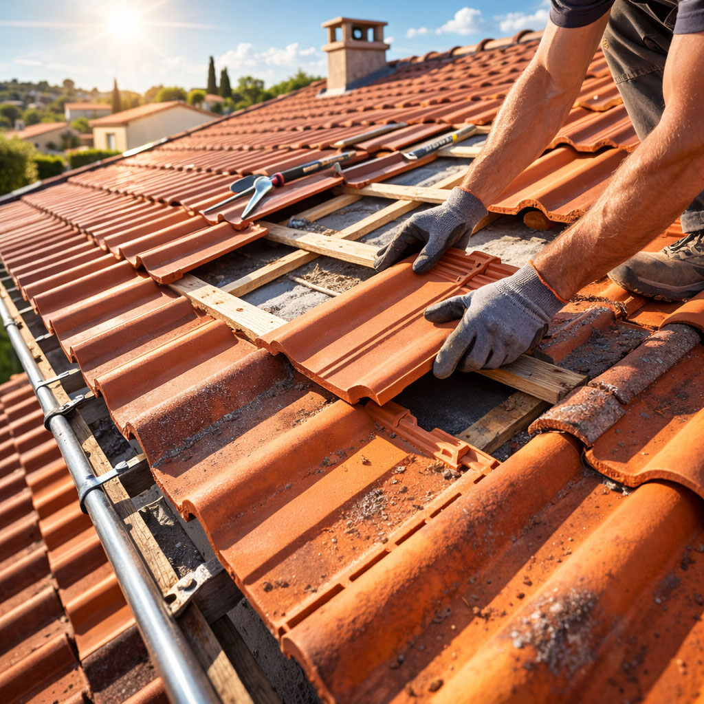 Signes à surveiller : tuiles cassées ou glissées visibles, traces d’humidité ou taches sur plafond, présence de mousse ou lichen importante, faîtage décollé ou fissuré, lumière visible depuis les combles. En cas de doute, Azur Toiture Rénovation réalise une inspection complète.