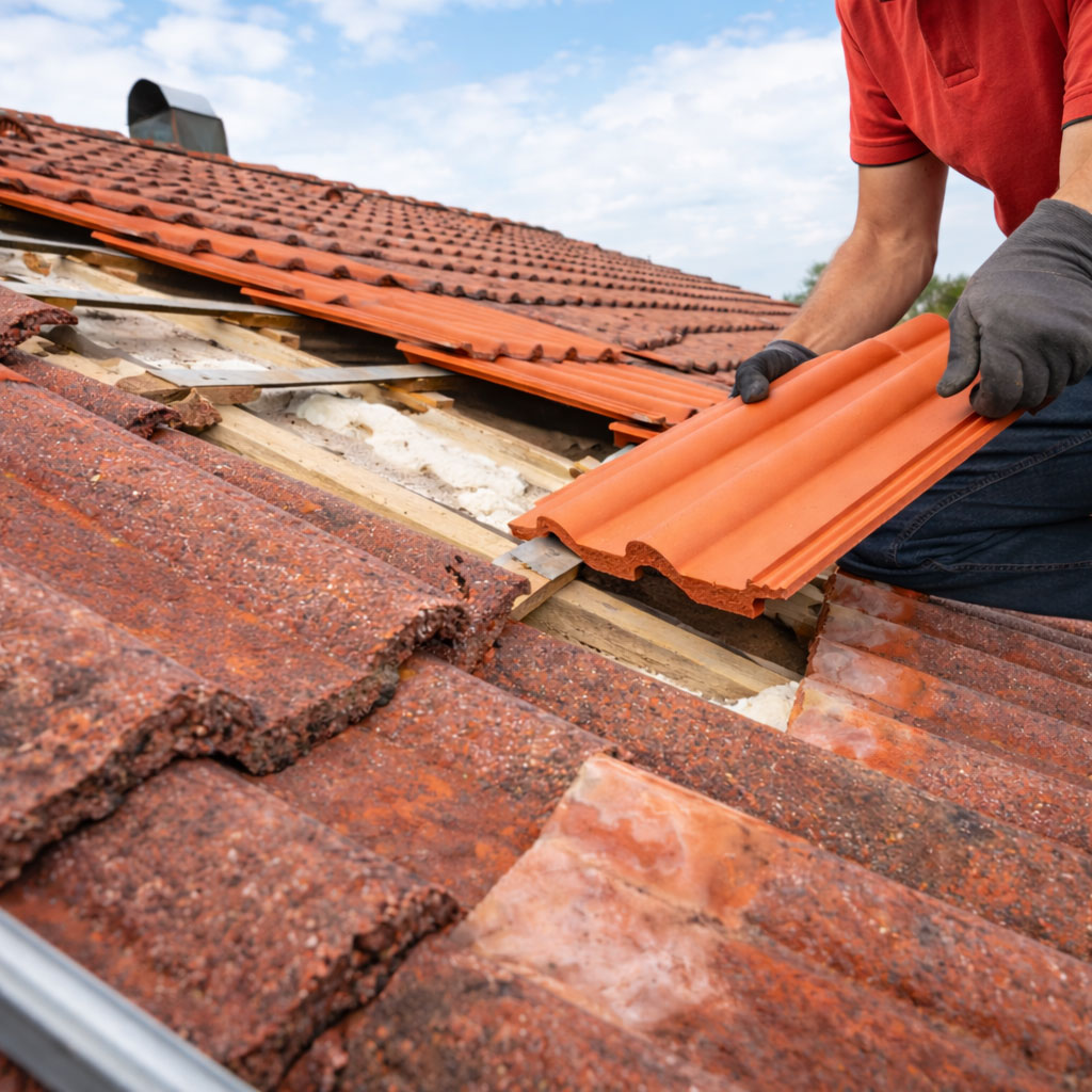 Intervention ciblée pour tuiles cassées, glissées ou manquantes. Remplacement à l’identique, nettoyage et rejointoiement du faîtage, reprise des noues et solins défaillants. Diagnostic photo offert avec chaque intervention pour un bilan complet de votre couverture.