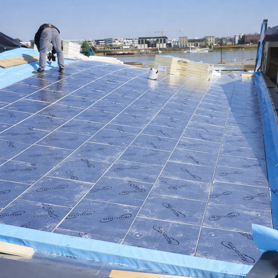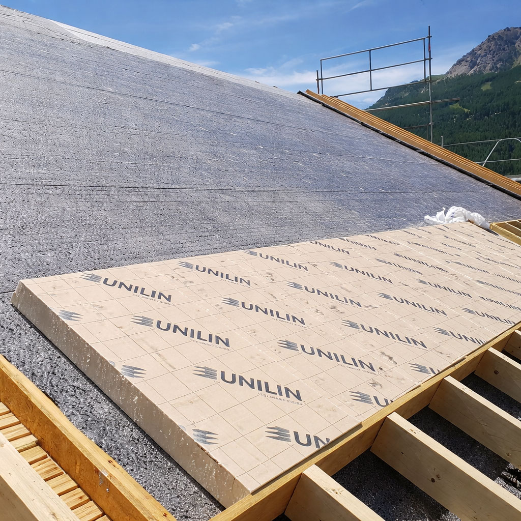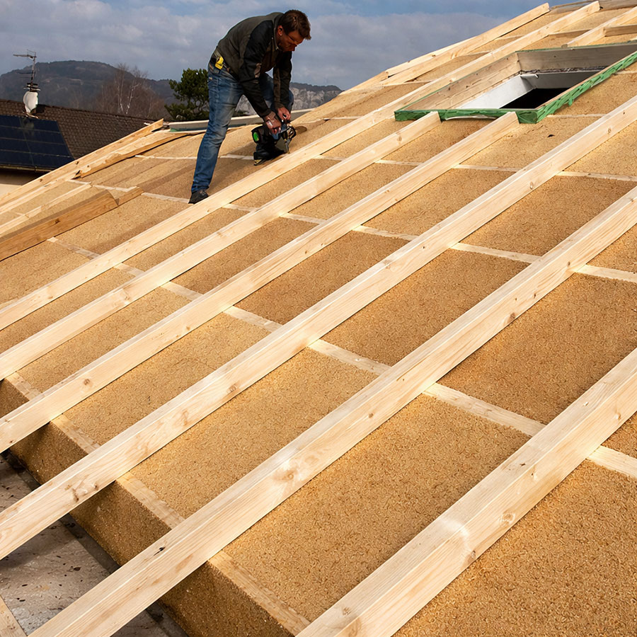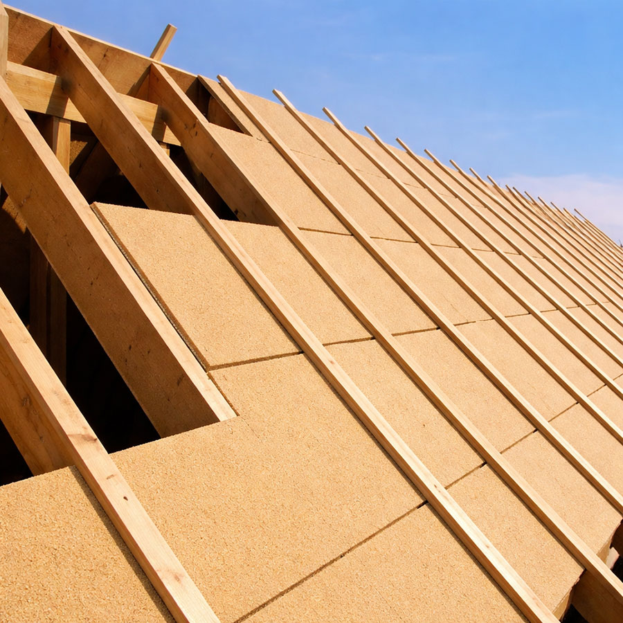 Panneaux rigides posés en continu sur toute la surface des chevrons, sans interruption. Les joints entre panneaux sont traités par adhésif pour garantir la continuité de l’isolation. Épaisseur déterminée par la performance thermique visée (R ≥ 6 m²K/W minimum).