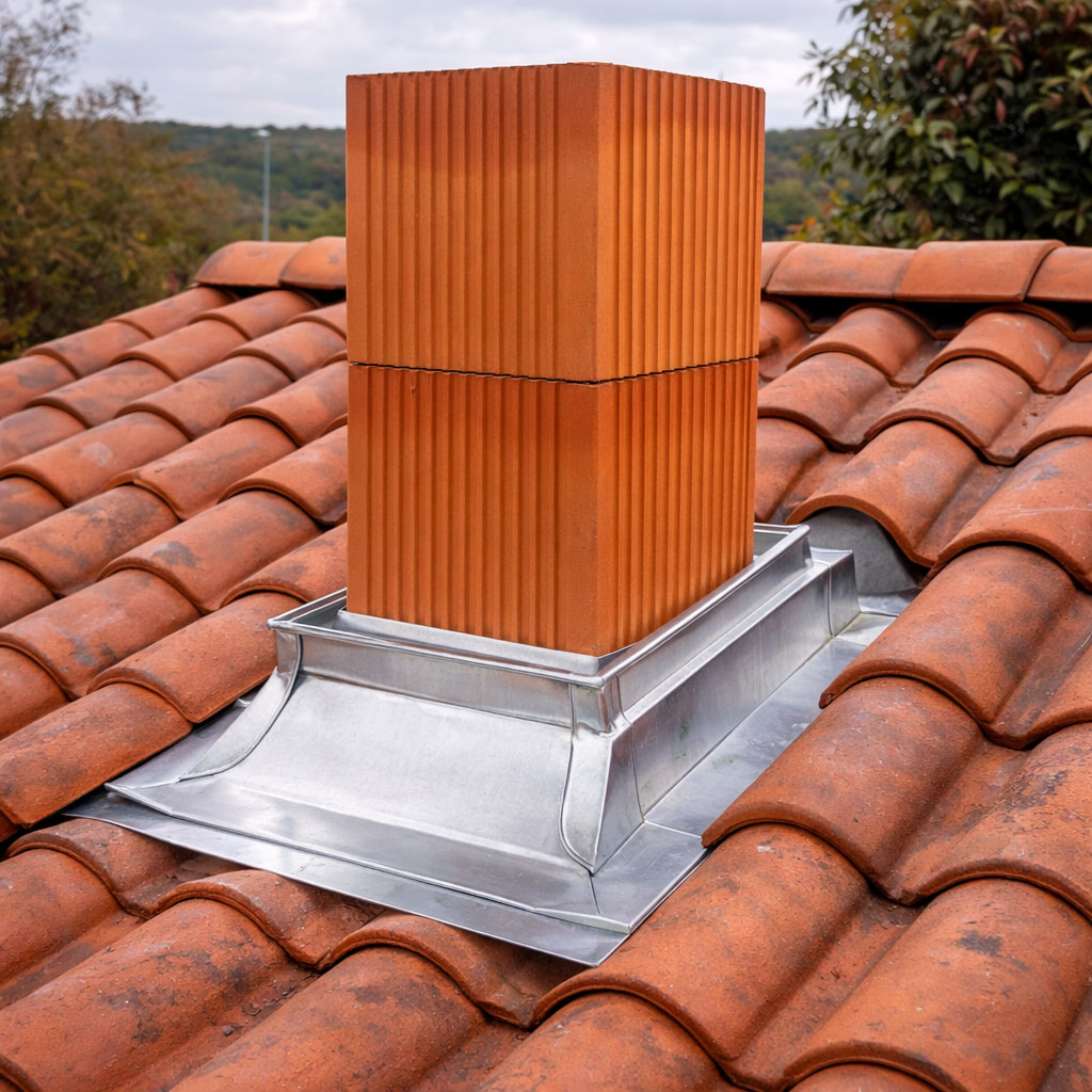 Solins de cheminée : habillage complet du conduit avec solin en plomb ou zinc, bavette supérieure et latérale, insertion dans les joints de maçonnerie, étanchéité parfaite contre ruissellement.