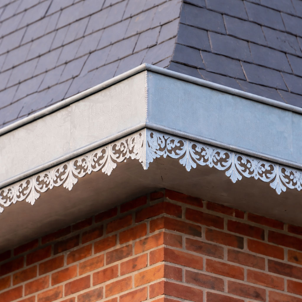 Chêneaux : système de collecte pour toitures plates ou à faible pente. Pose de chêneaux rampants ou pendants, dimensionnement précis selon DTU, soudures étanches au chalumeau, pente d’évacuation minimum 5mm/m.